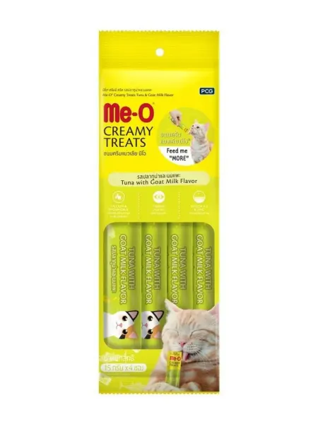 Me-O Creamy Treats Ton Balıklı ve Keçi Sütlü Sıvı Kedi Ödül Maması 4x15 gr