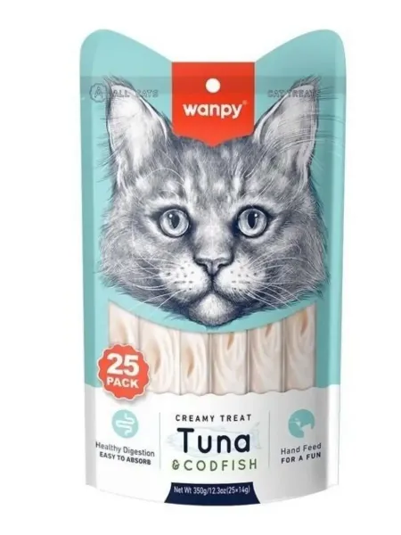 Wanpy Ton Balığı ve Morina Balıklı Sindirim Sistemi Destekleyici Krema Kedi Ödül Maması 25x14 gr